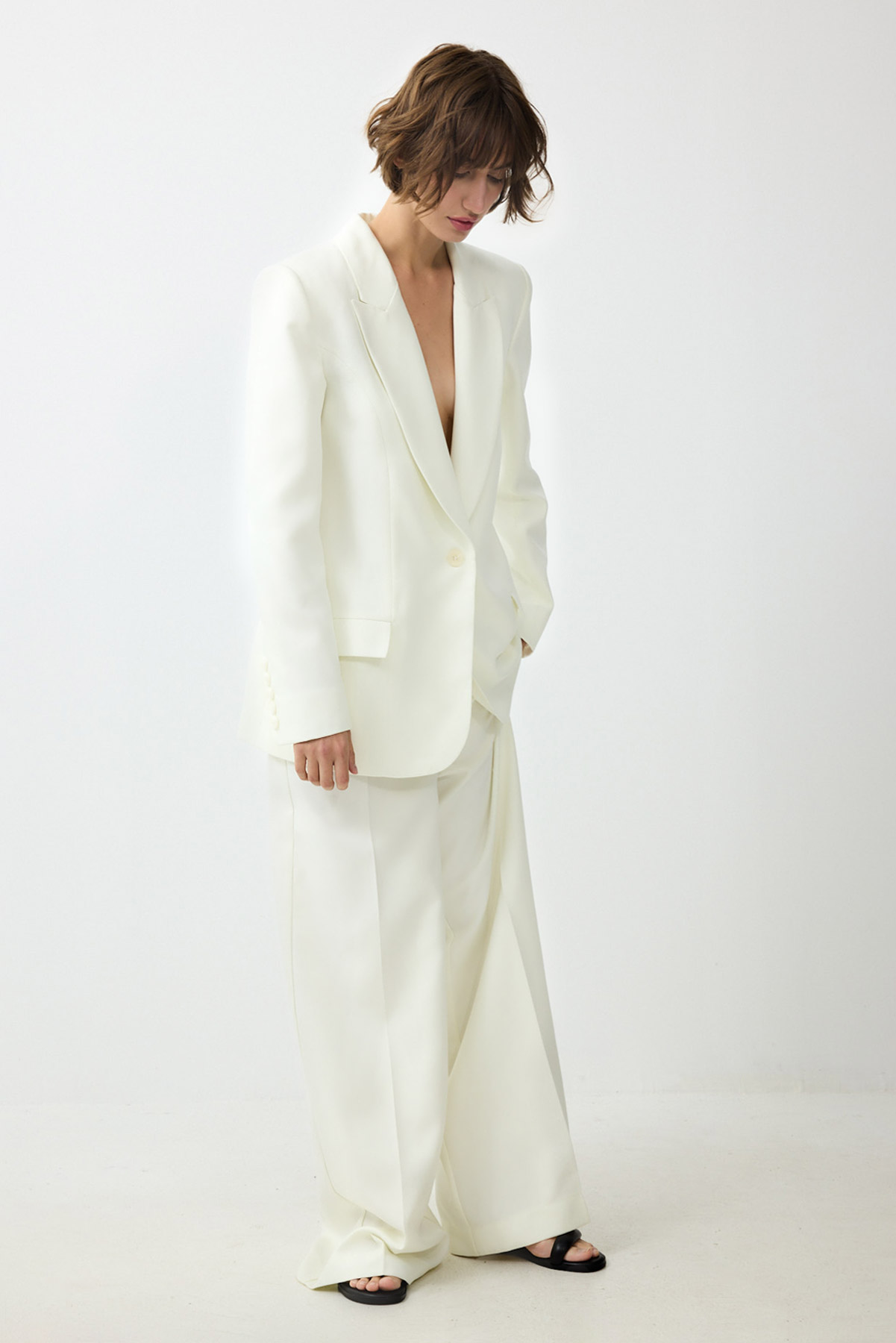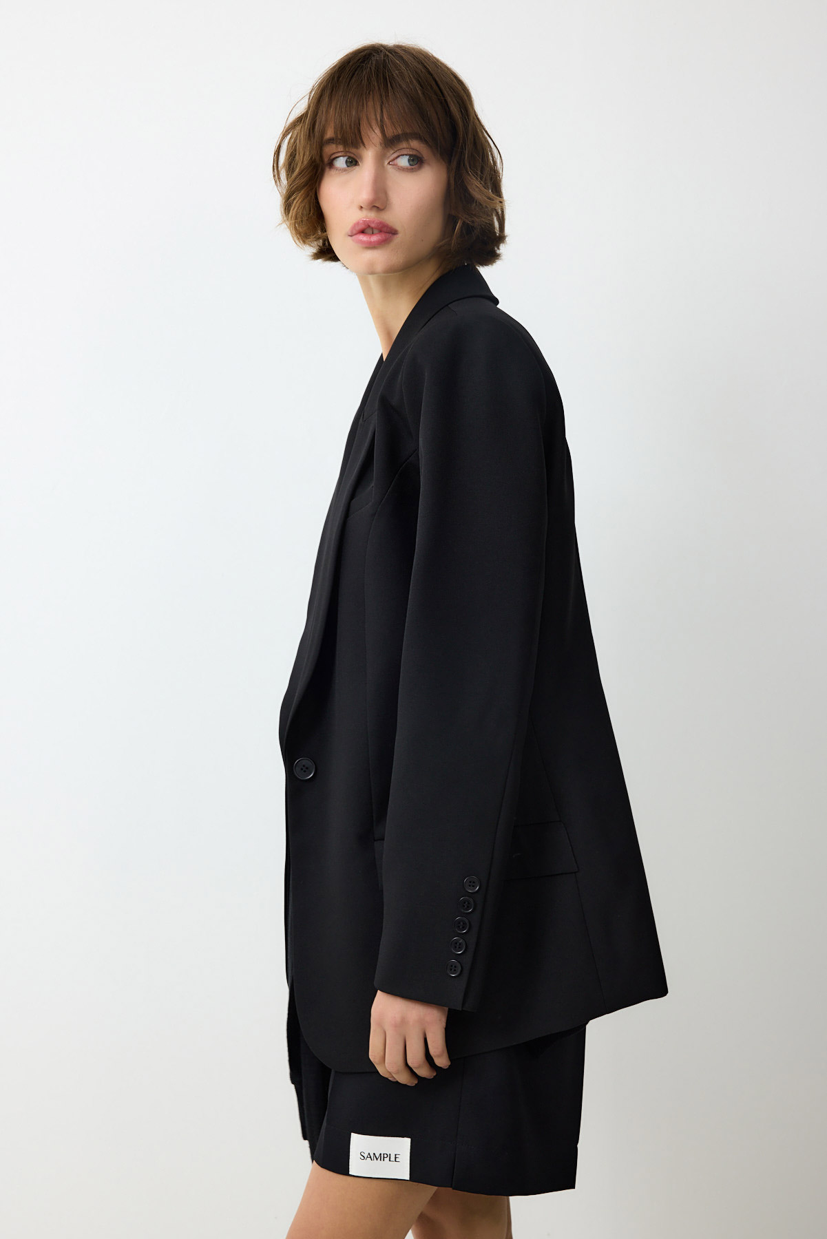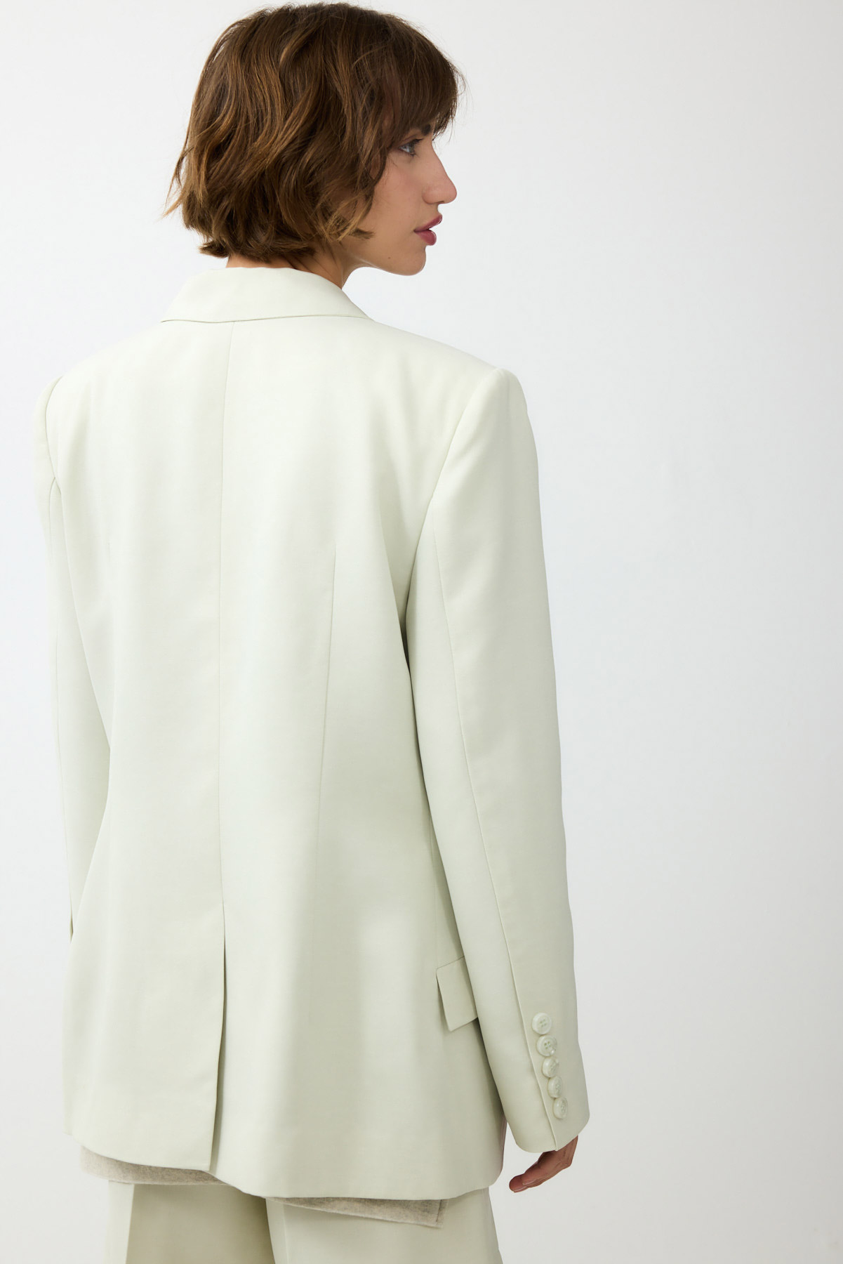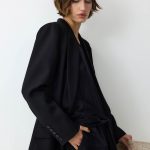ג'קט מחויט בהשראה גברית ובסגנון מינימליסטי. עיצוב נקי וישר בקווים חדים, המעניק מראה מקצועי ואלגנטי.