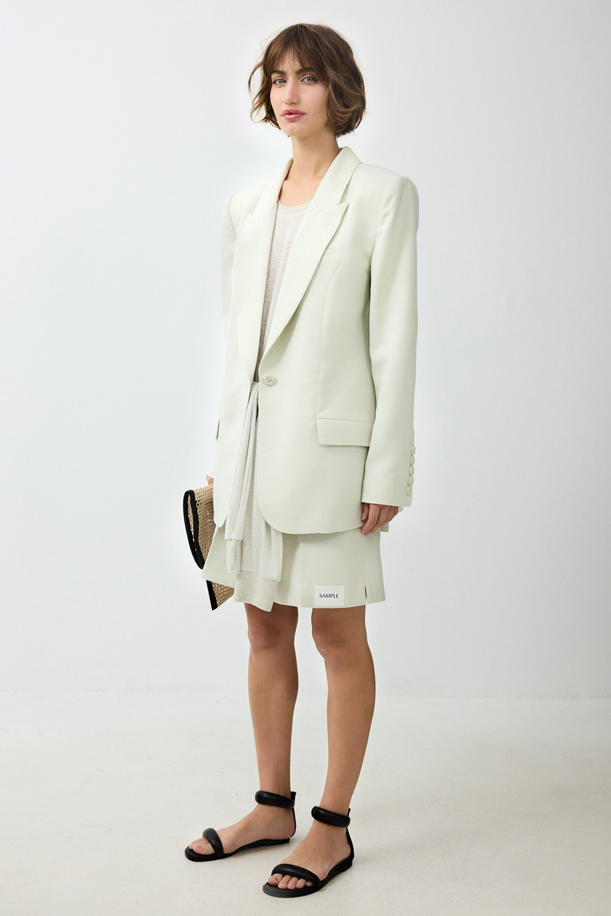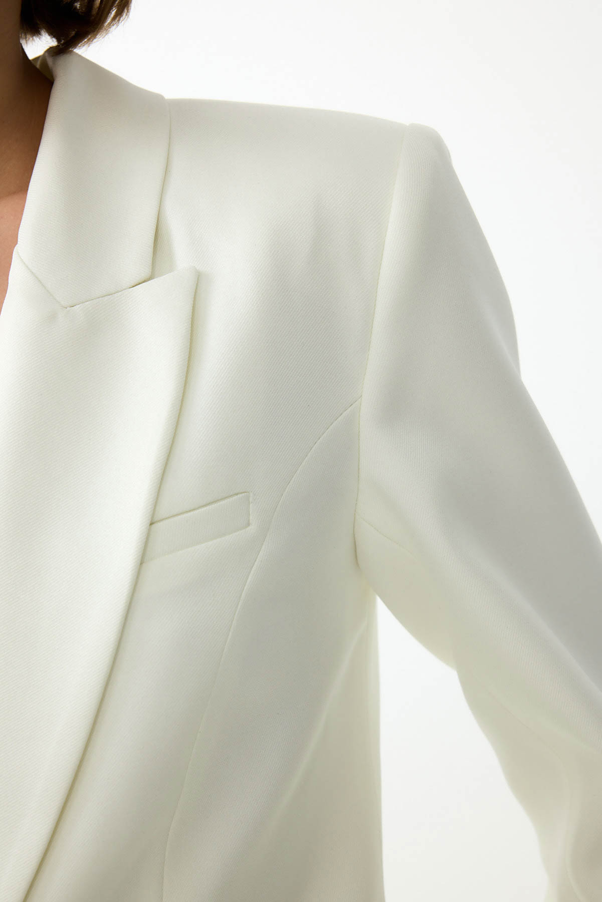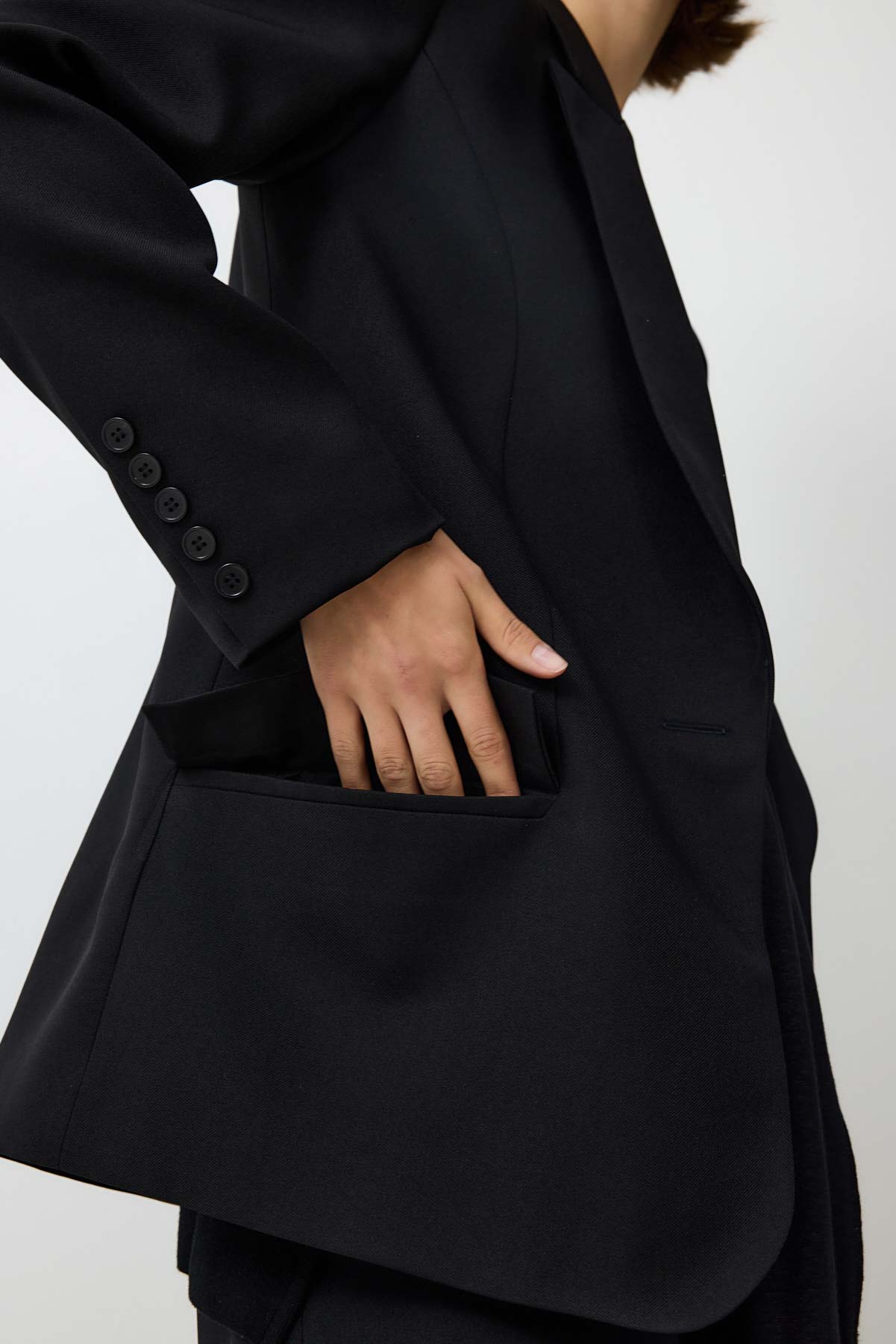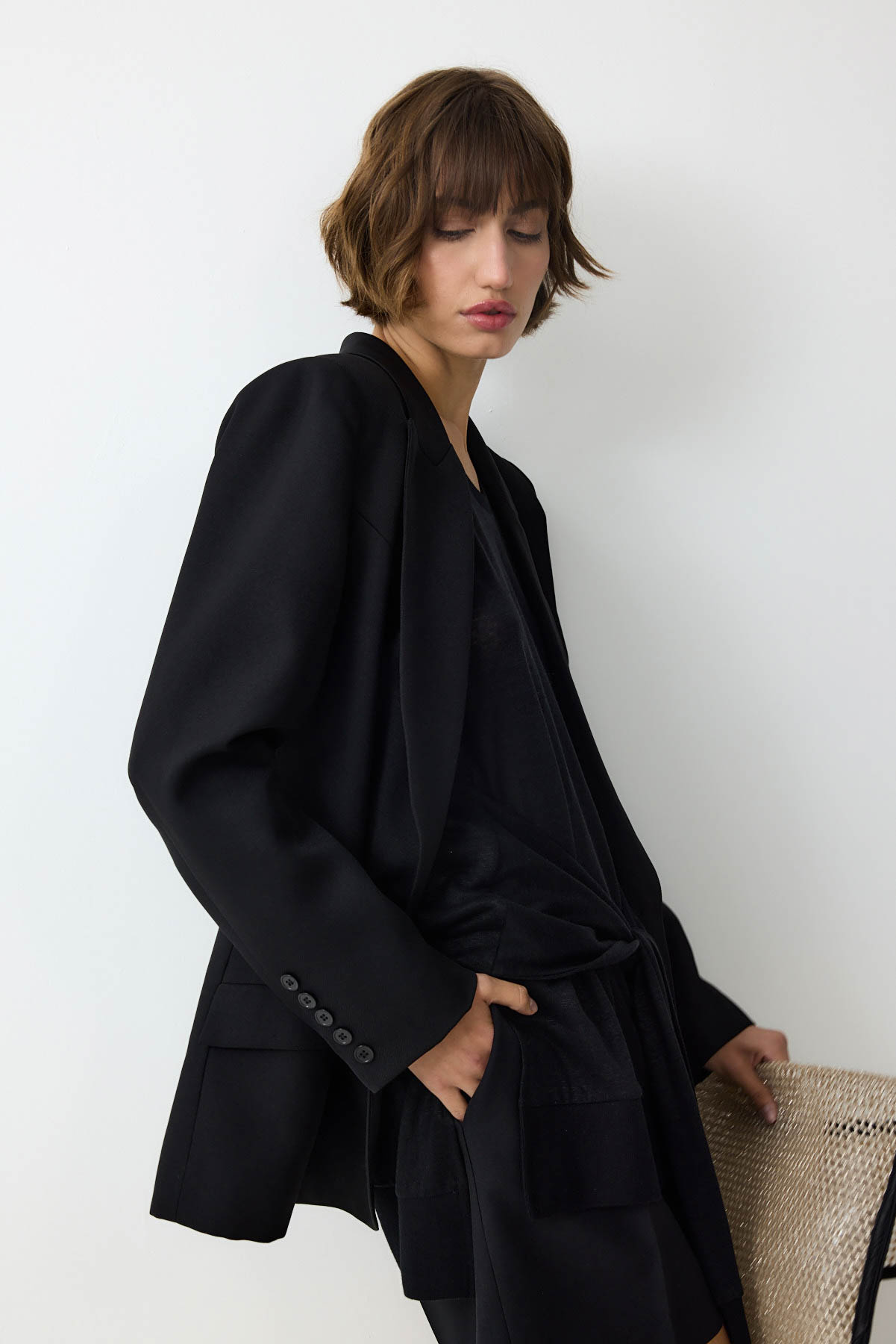 ג'קט מחויט בהשראה גברית ובסגנון מינימליסטי. עיצוב נקי וישר בקווים חדים, המעניק מראה מקצועי ואלגנטי.