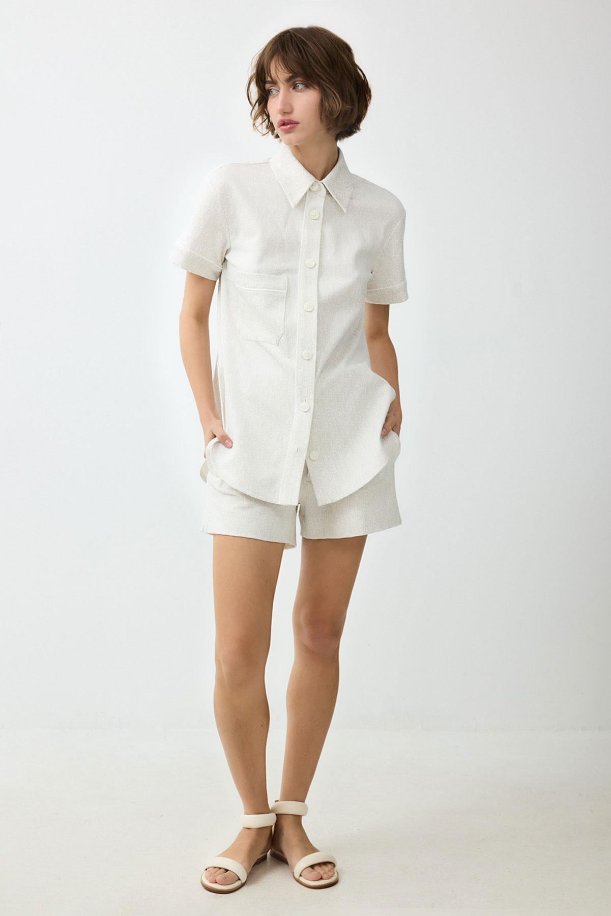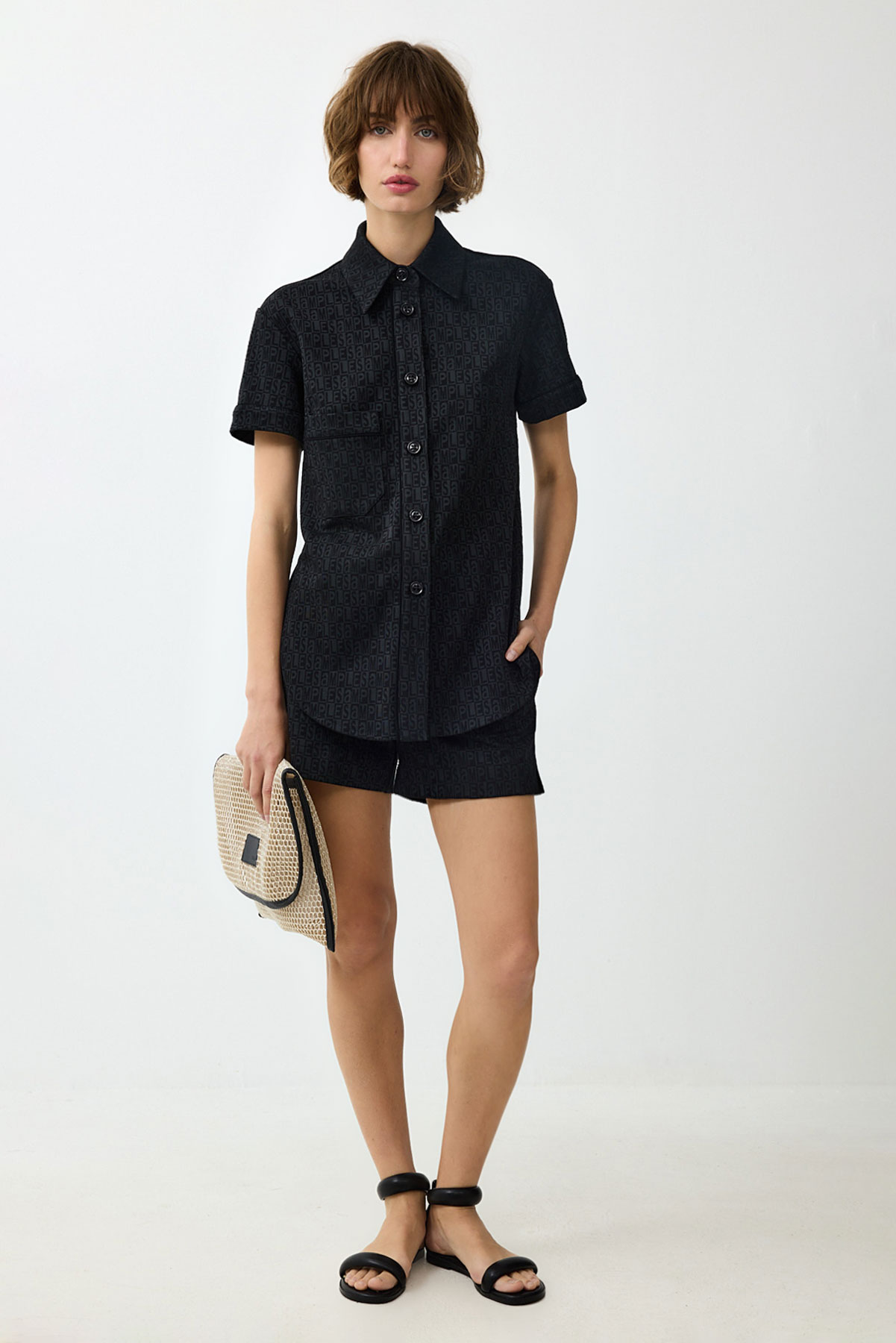 Buttoned summer suit with logo woven in two-thread jacquard. Effortless yet elegant – for days that demand the right style.