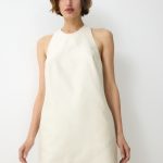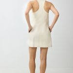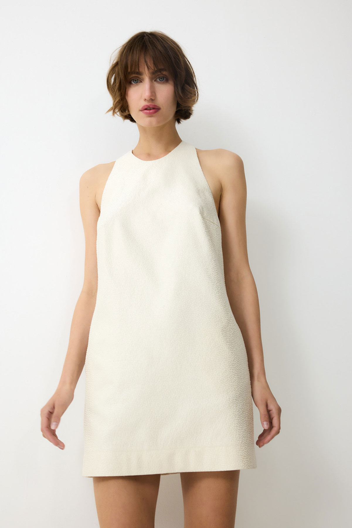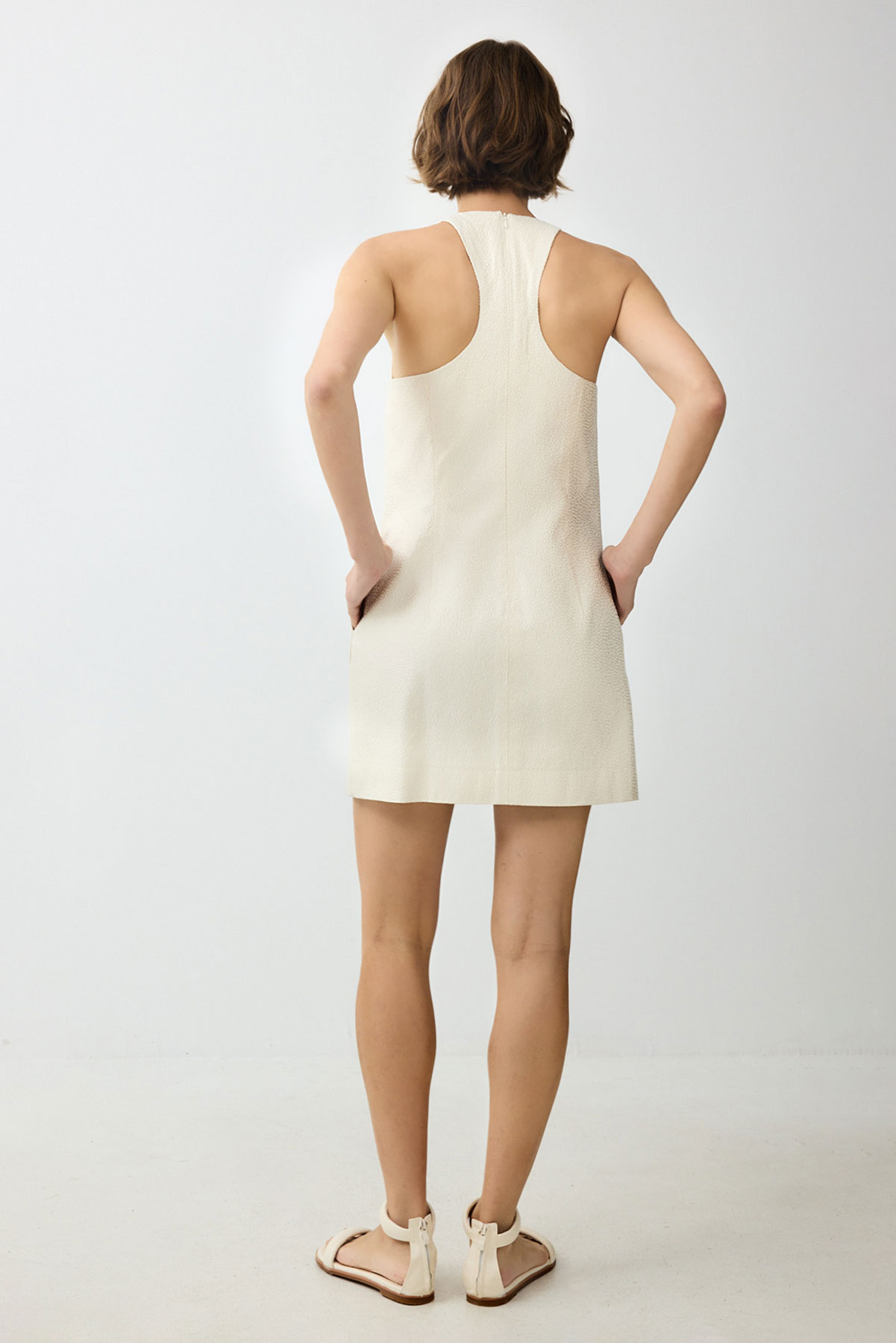Summer silk dress in pale pink – classic straight cut that radiates quiet confidence. Hidden pockets maintain clean lines. Elegance that speaks the language of luxurious simplicity.
