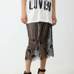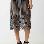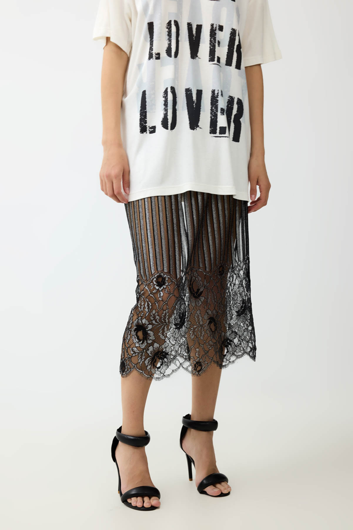 Straight, minimalist lace skirt in black lace weave combined with silver lurex thread. The sophisticated combination creates elegant shine.
